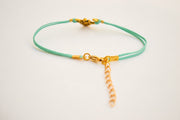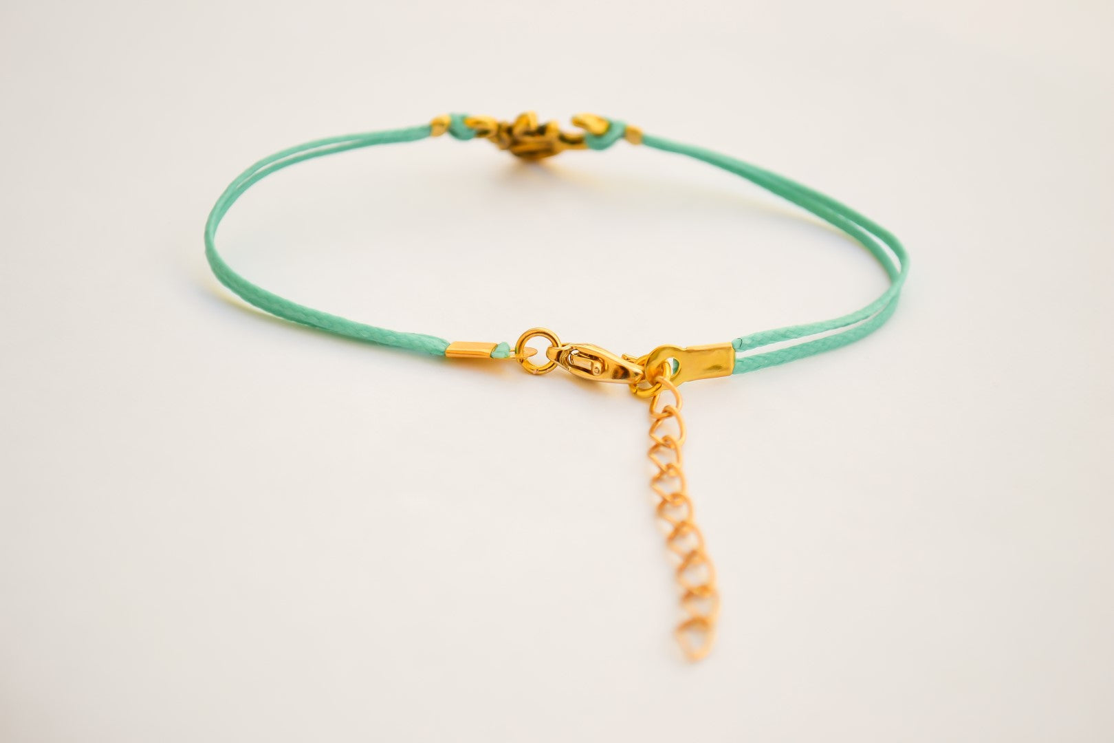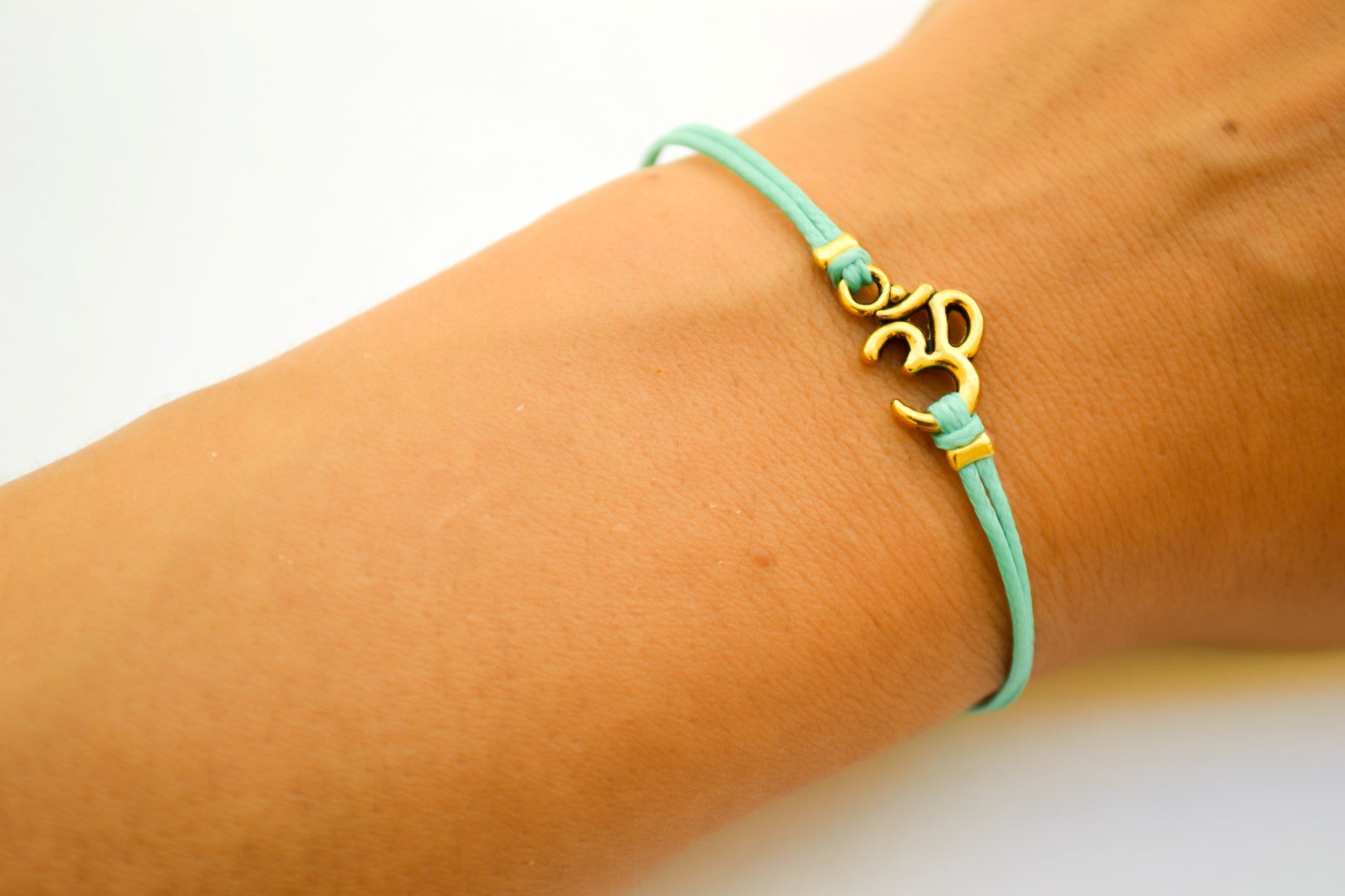 Om bracelet - string bracelet with a gold tone Om charm - ॐ (The Om id a Hindu Symbol of the Absolute). The cord is black and made of cotton and the charm is made of alloy. Closure: clasp. You can choose a different cord color from the colors shown in the last picture.
