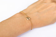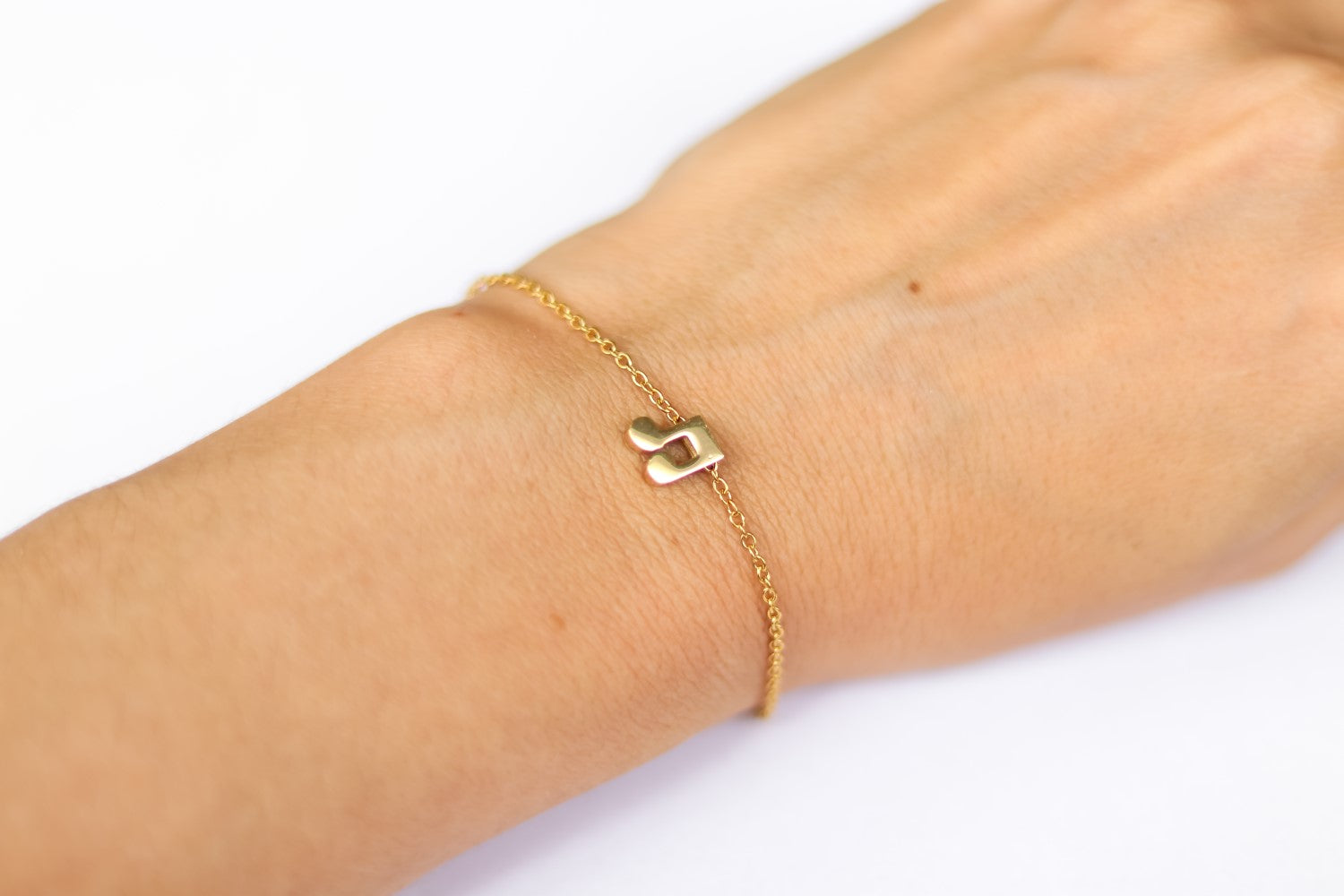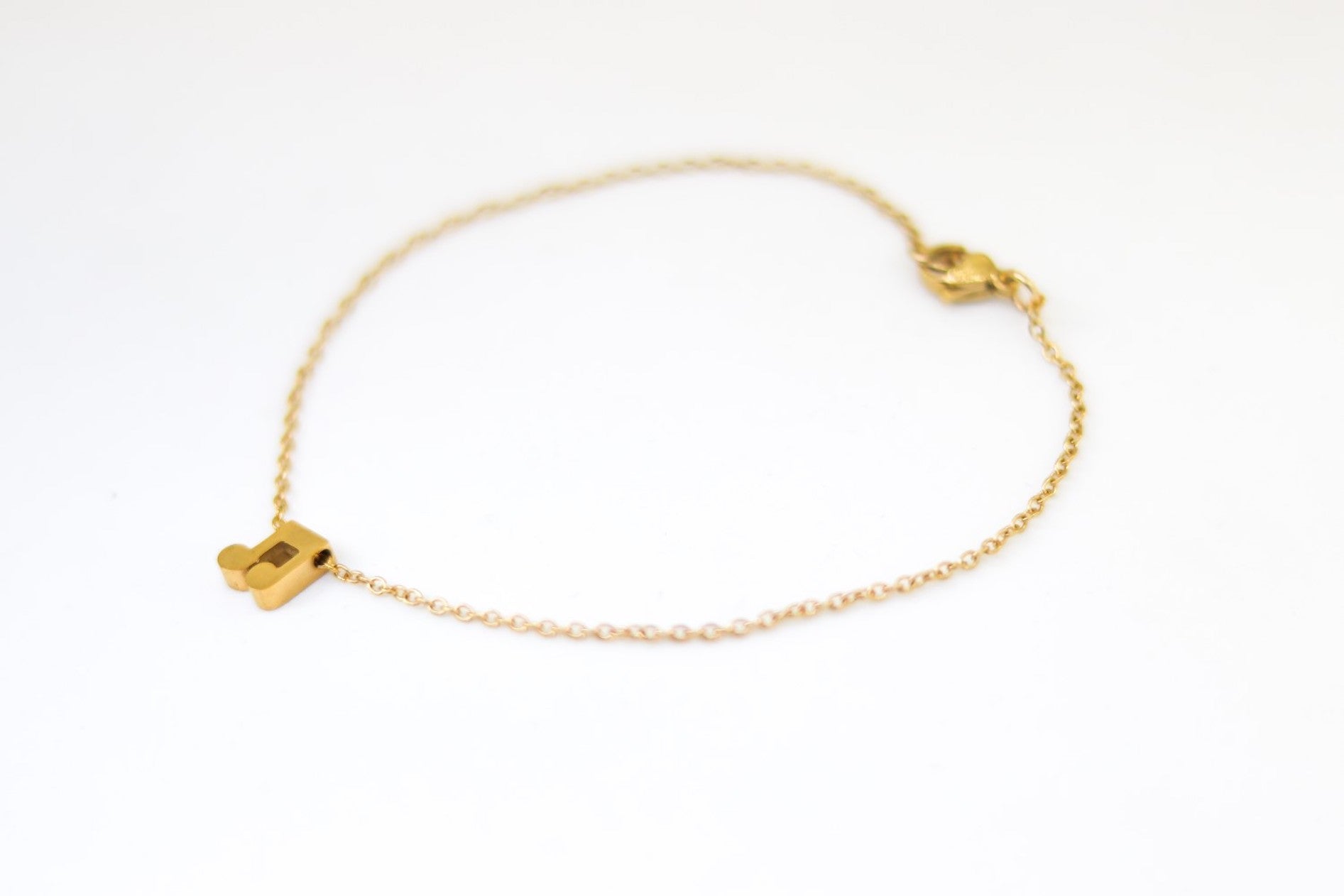 A minimalist music note bracelet with a tiny music note bead charm on a gold tone stainless steel chain. Clasp closure.