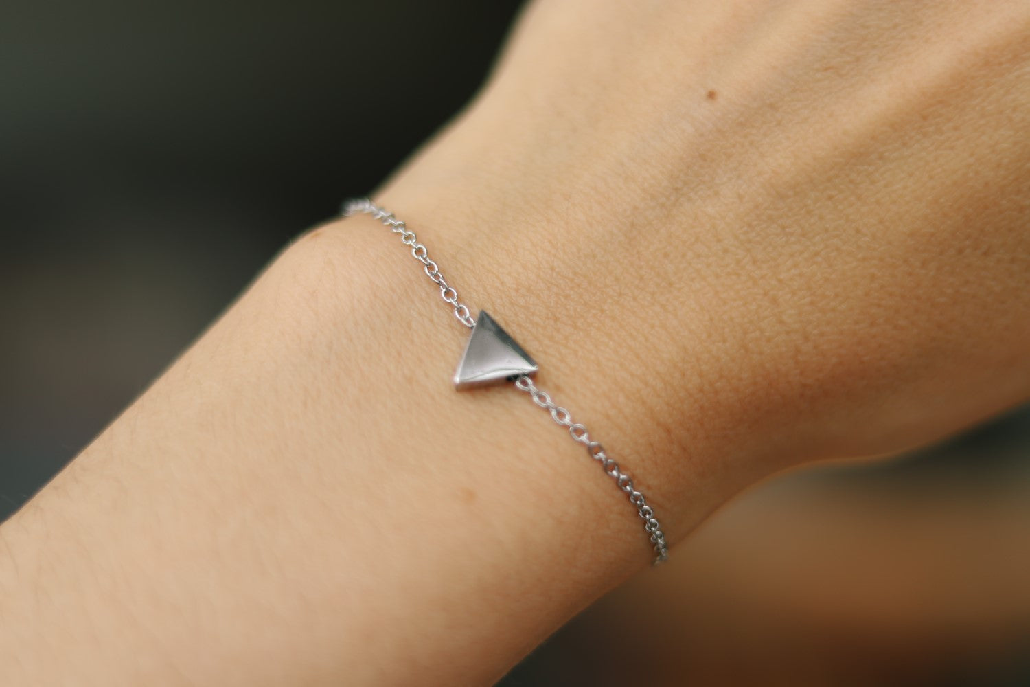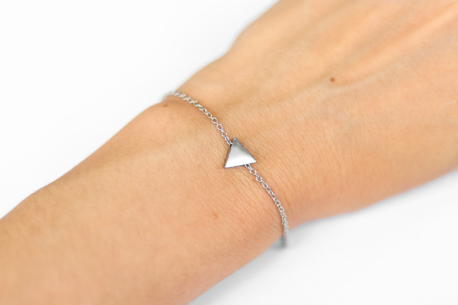 Triangle bracelet, waterproof silver chain bracelet, small triangle bead charm bracelet