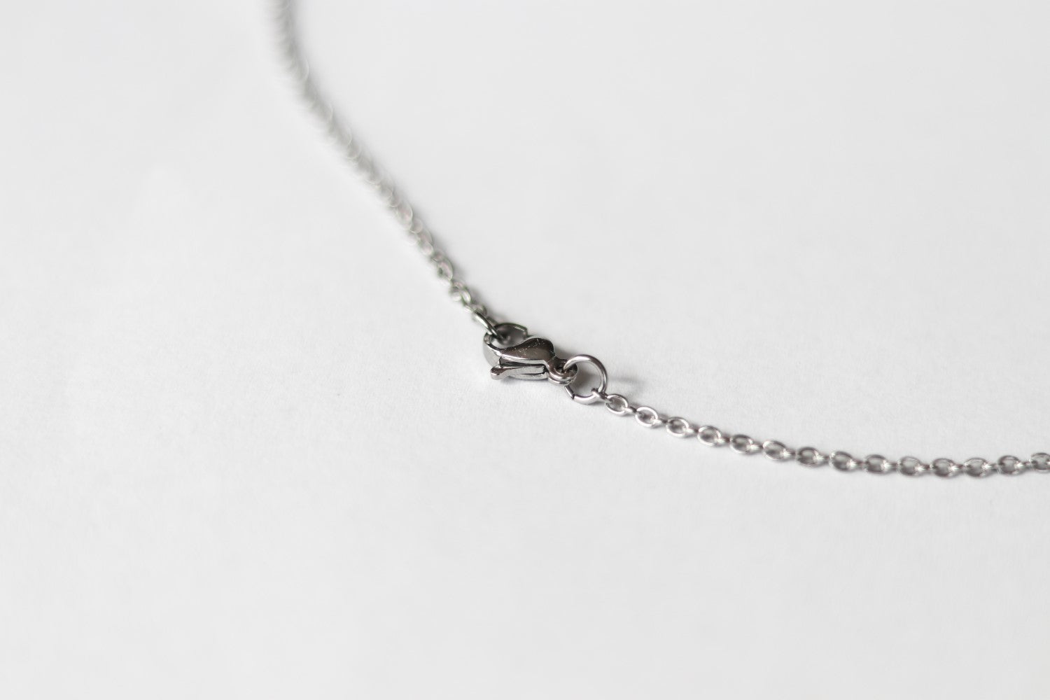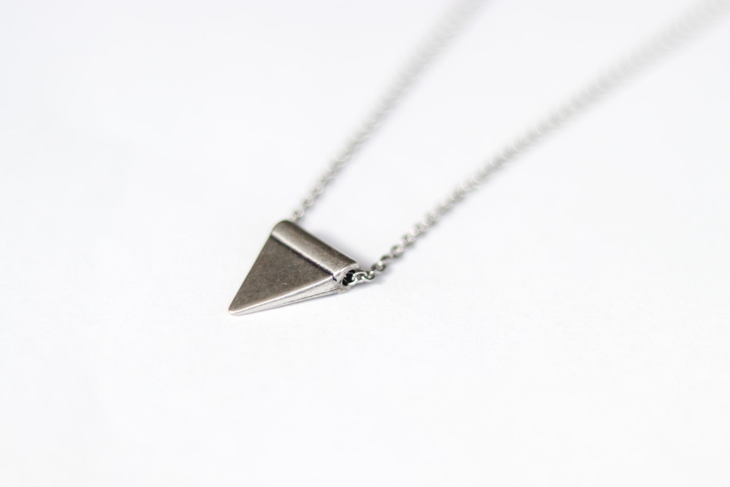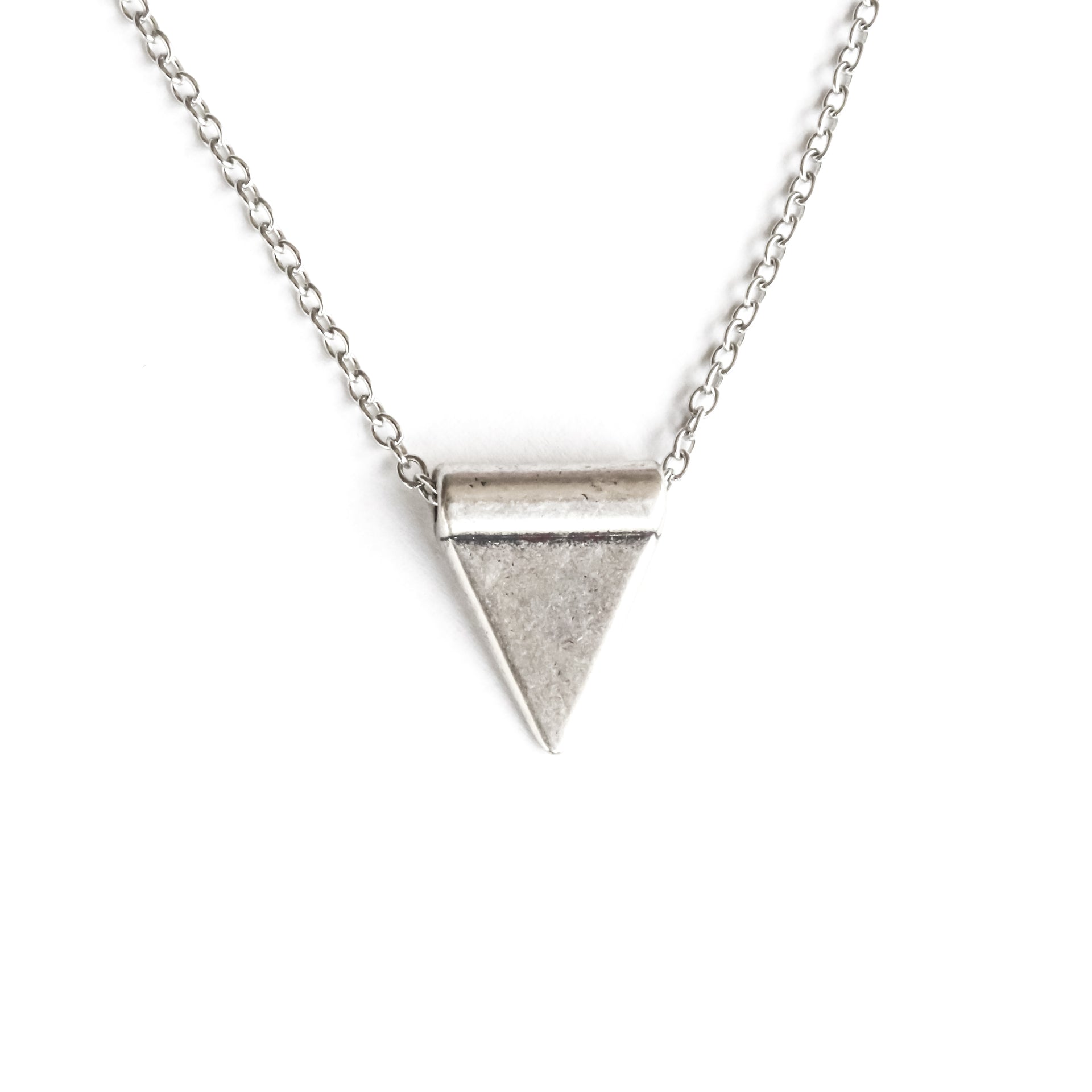 Pendant necklace for men - men's necklace with a silver plated triangle pendant on a stainless steel chain and a clasp closure.