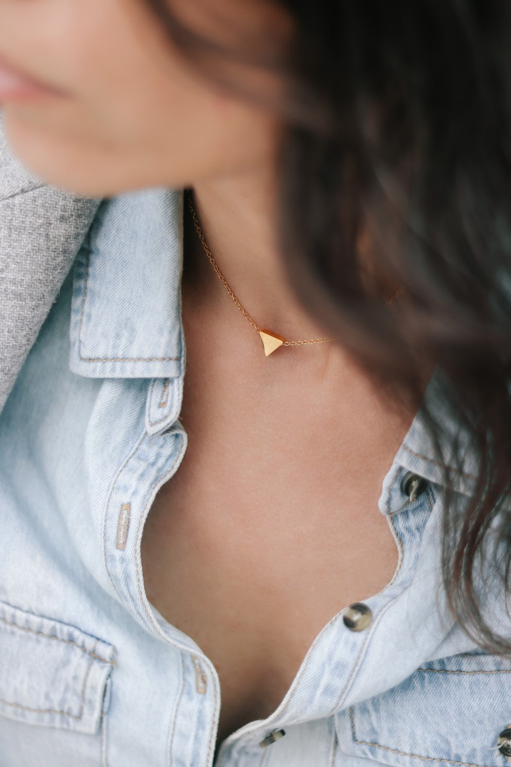 Triangle necklace, tiny gold bead necklace, chain necklace, personalised jewelry, festival jewelry