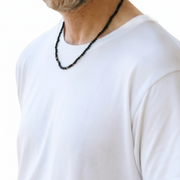 Botswana Agate stone beads necklace for men. The Botswana Agate stone is often believed to support deep inner work and personal growth. It is said to help release suppressed emotions and strengthen willpower.