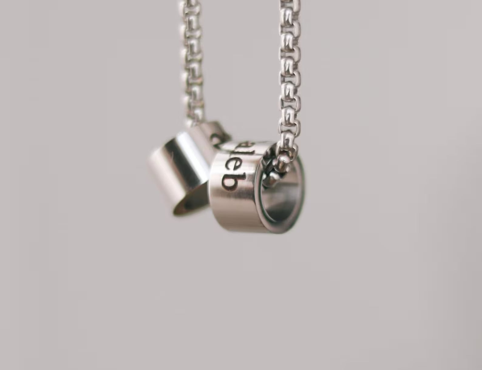 Add a personal touch to your jewelry with this stainless steel charm, engraved with your choice of text. Easily attach it to an existing necklace or bracelet.