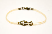 Bronzefarbenes Kreuz-Fisch-Armband für Männer, schwarze Kordel, christliches Geschenk für ihn
