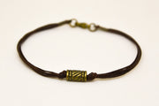 Armband für Herren – Kordelarmband mit einem bronzefarbenen Röhrenperlenanhänger. Die Kordel ist dunkelblau und besteht aus gewachster Baumwolle und die Perle besteht aus einer Legierung. Hakenverschluss. Sie können eine andere Kordelfarbe als die im letzten Bild gezeigten Farben wählen.