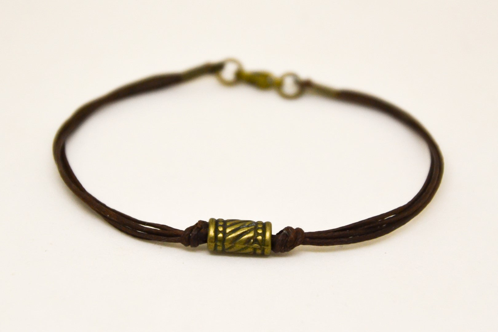 Bronzenes Perlenarmband für Männer, blaue Schnur, minimalistischer Schmuck für ihn, individuelles handgefertigtes Geschenk
