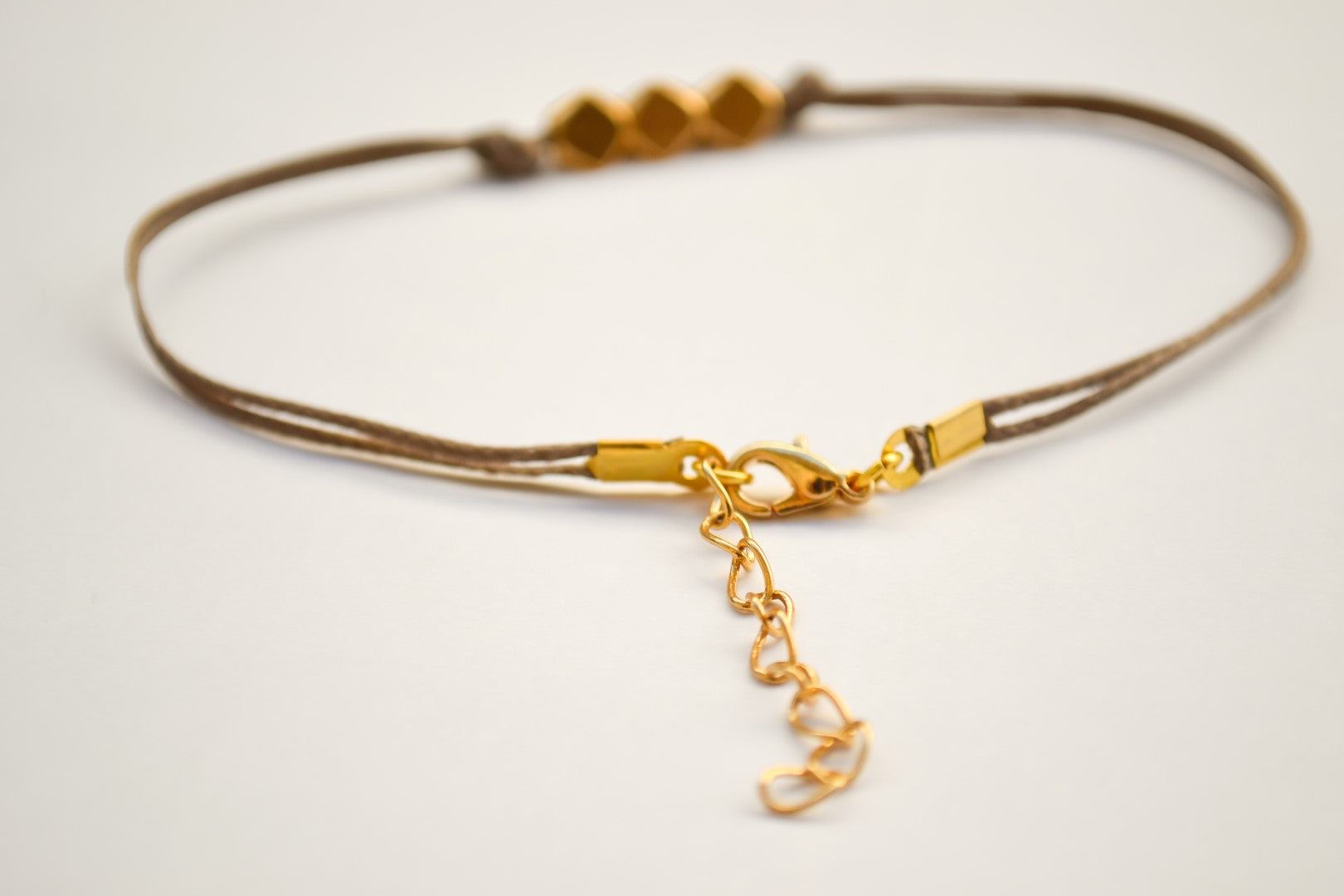 Armband mit braunen Goldnuggets aus Kordel, Geschenk für Sie, in Geschenkverpackung