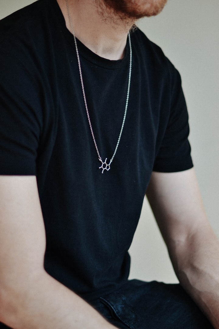 Koffein-Molekül-Halskette für Männer, personalisierte Edelstahlkette, silberfarbenes Geschenk für ihn, Festival-Schmuck
