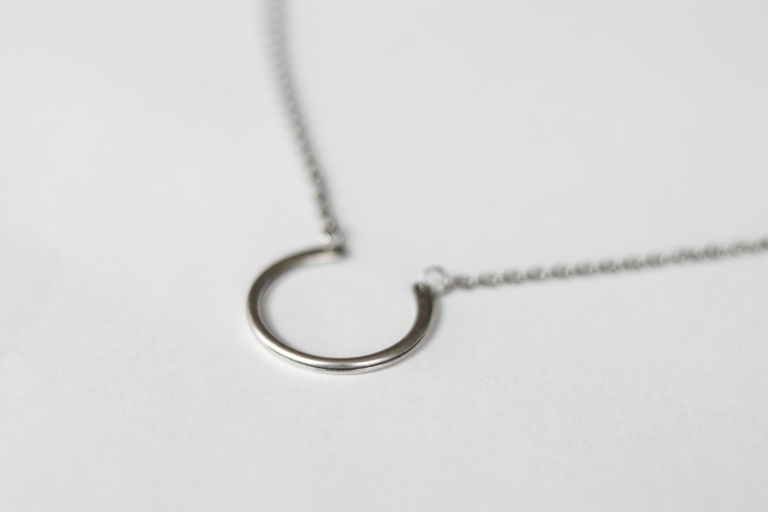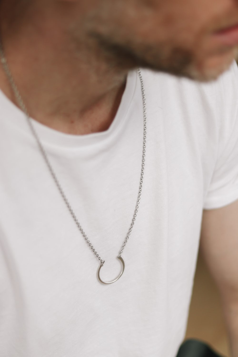 Kreis-Halskette für Männer, Herren-Halskette, silberner offener Halbkreis-Anhänger, Kette