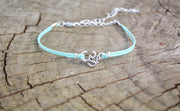 Fußkettchen mit Om-Anhänger – Kordel-Fußkettchen mit einem silberfarbenen Om-Anhänger – ॐ (Das Om ist ein hinduistisches Symbol des Absoluten). Die Kordel ist türkis und aus Baumwolle gefertigt. Der Om-Anhänger besteht aus einer Legierung. Verschluss mit Karabinerhaken. Das Fußkettchen wird mit einer Verlängerung geliefert, sodass es verstellbar ist. Sie können eine andere Farbe für die Kordel wählen, als die auf dem letzten Bild gezeigten Farben.