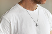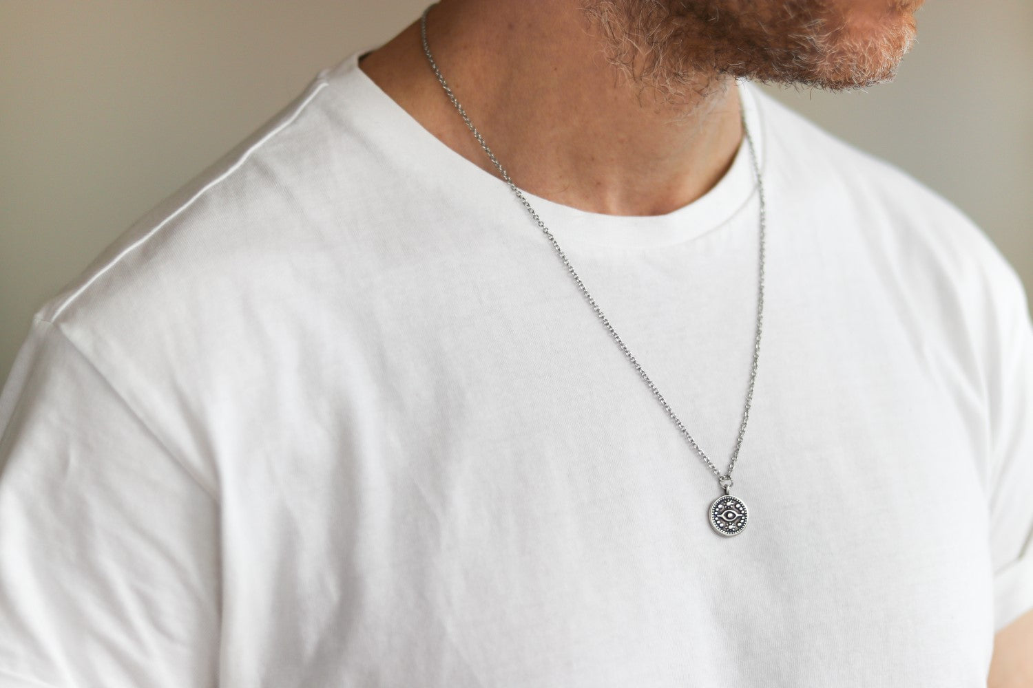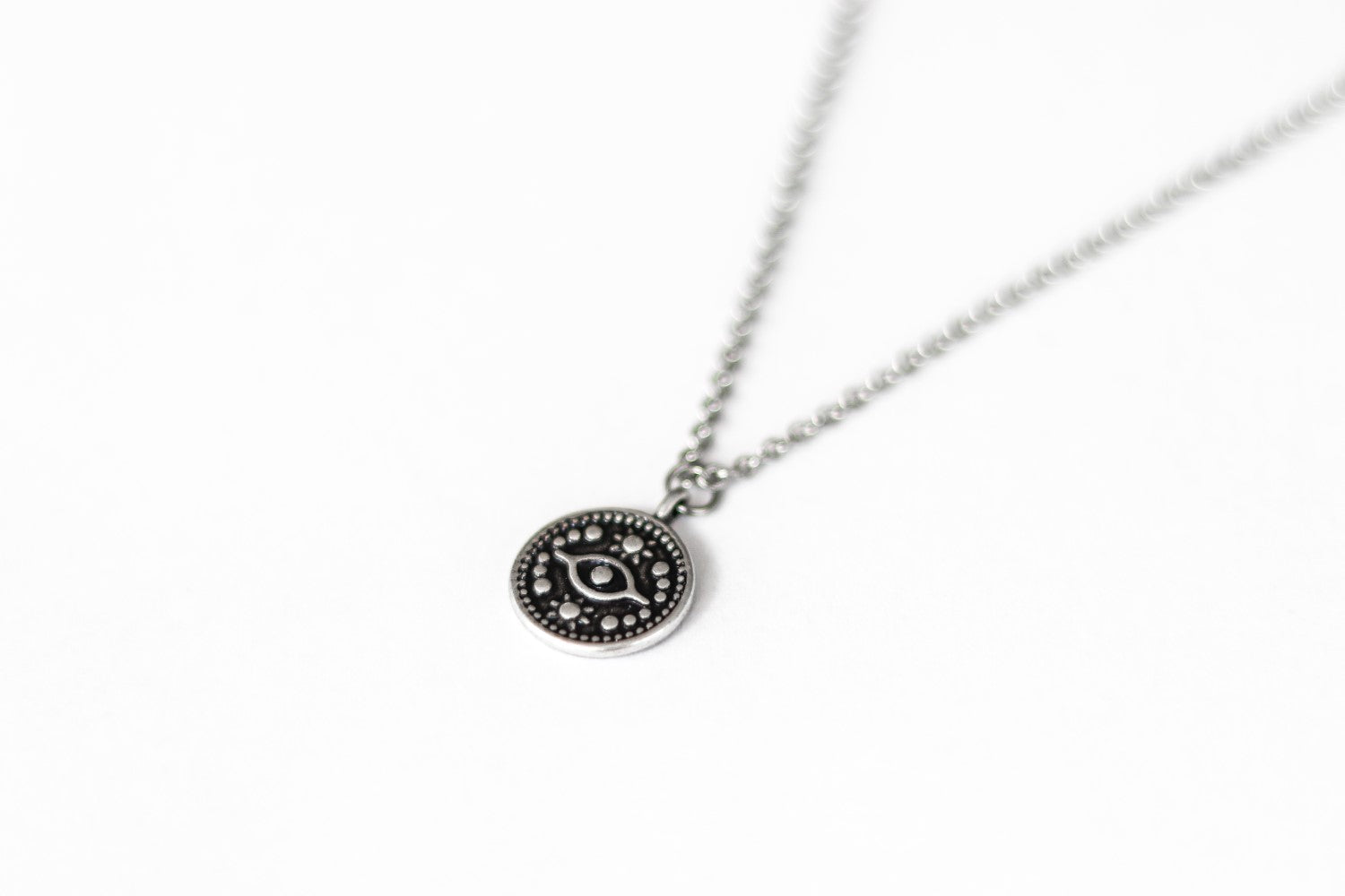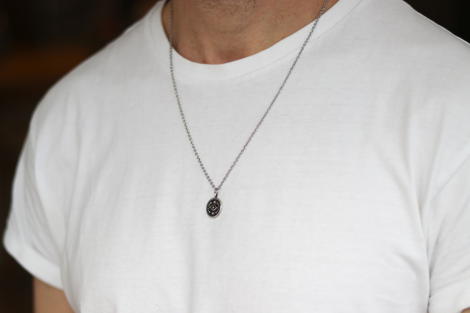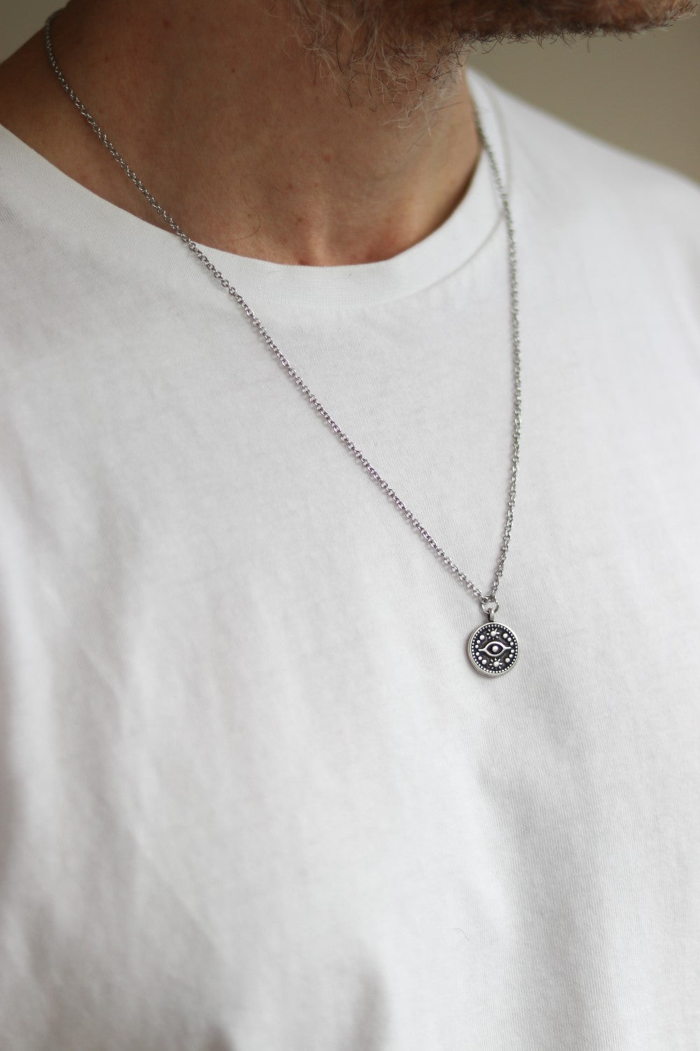 Halskette für Herren - Herrenhalskette mit einem versilberten Auge als Anhänger an einer Edelstahlkette mit Karabinerverschluss.