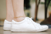 Minimalistische goldfarbene Fußkette aus Edelstahl (wasserfest). Mit Karabinerverschluss.