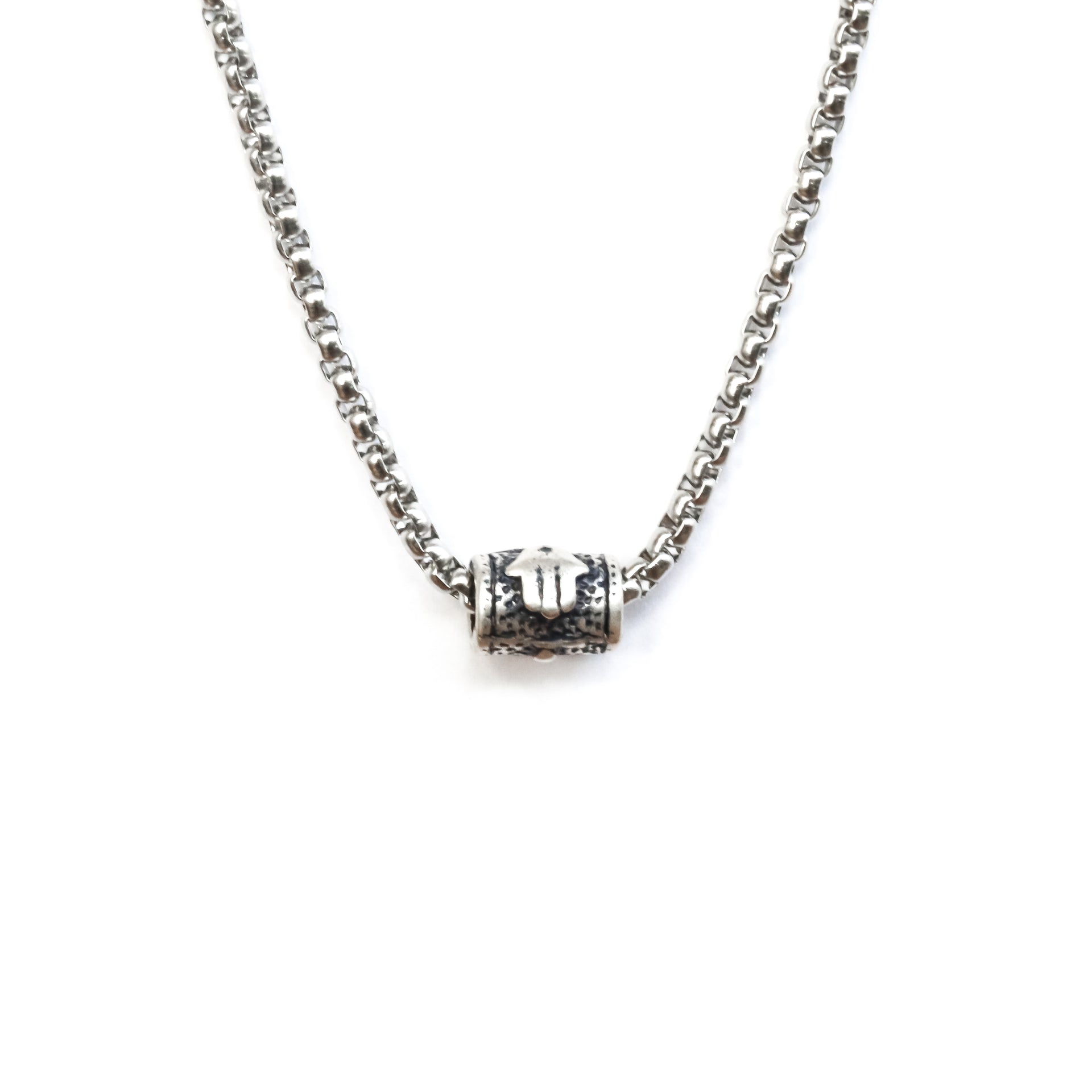 Hamsa-Halskette für Männer, Herrenkette mit einer Silberperle mit Hamsa und Fisch