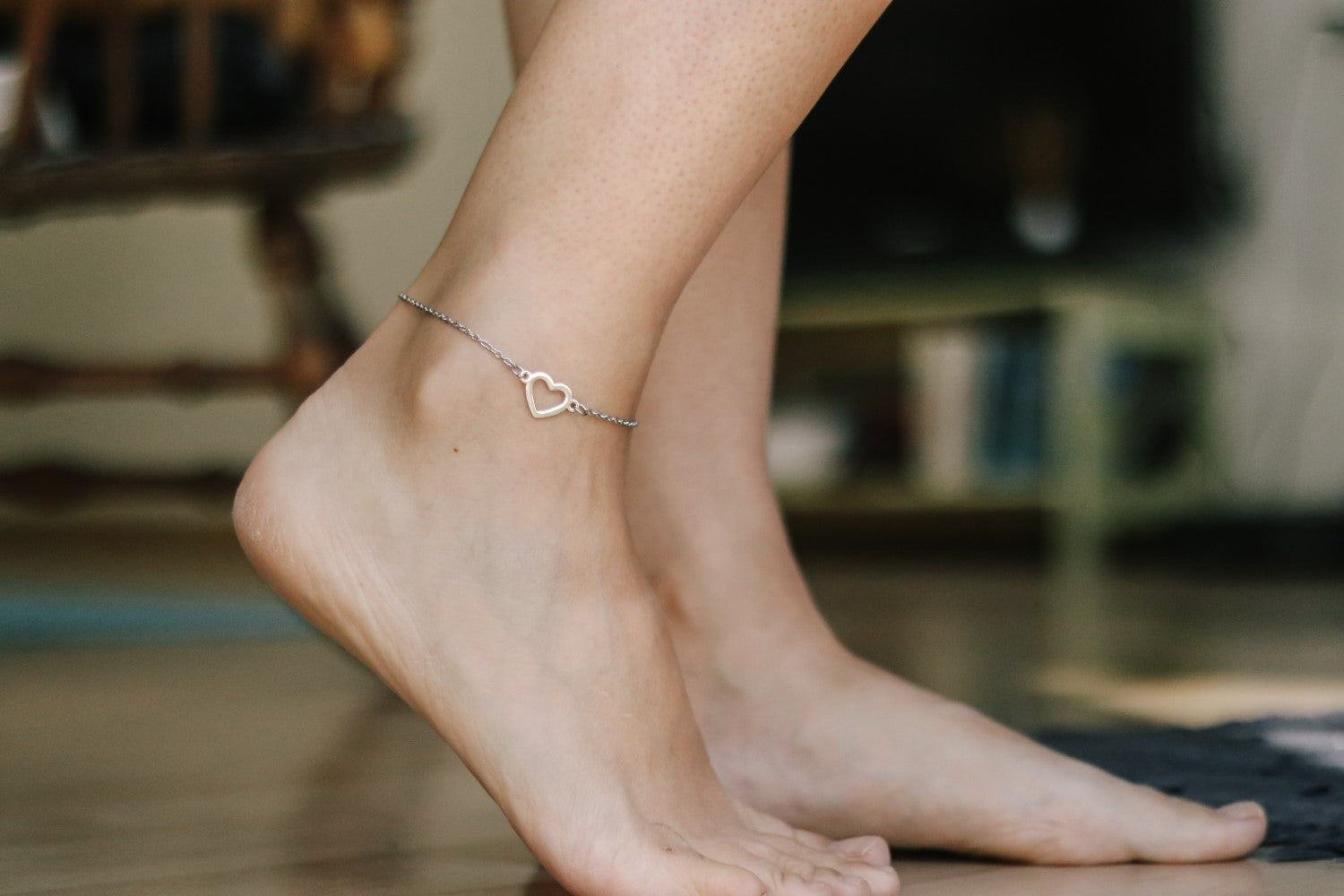 Herz-Fußkettchen, wasserdichtes Silberketten-Fußkettchen, individuelle Länge, Festivalschmuck