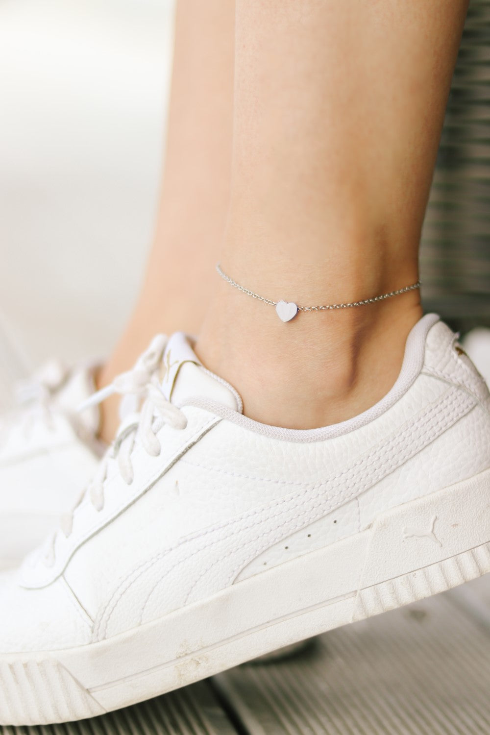Herz-Fußkettchen, wasserdichtes Silberketten-Fußkettchen, kleines Herz, personalisierter Schmuck