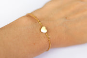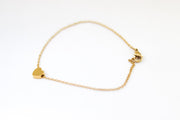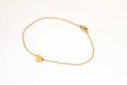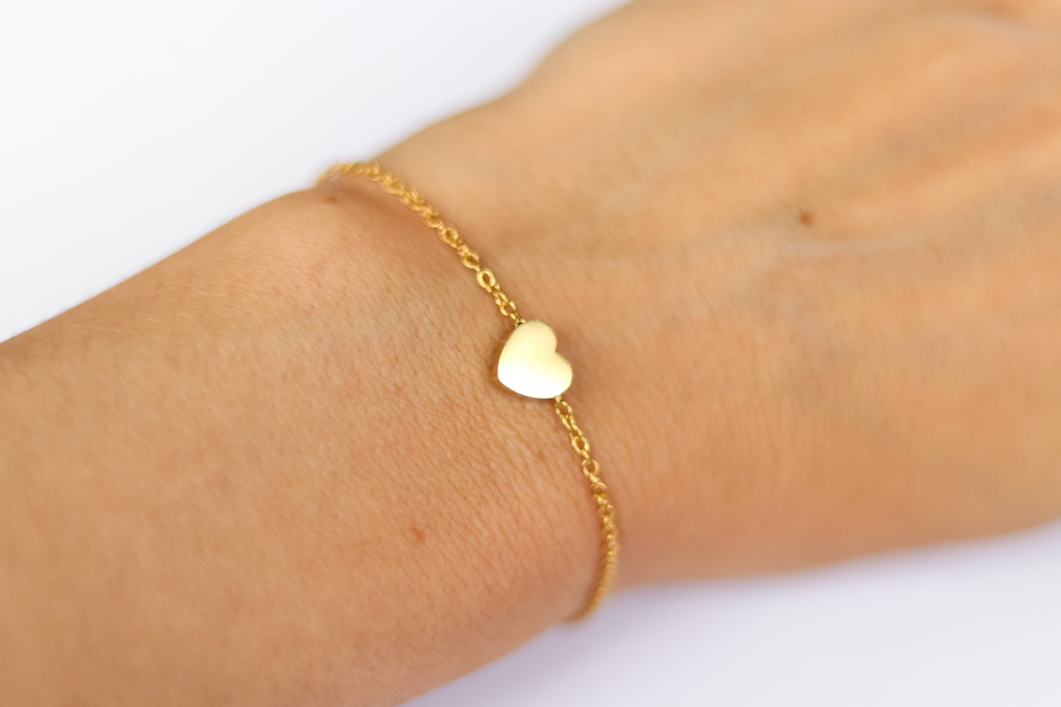 Ein minimalistisches Herzarmband mit einem kleinen Herzperlenanhänger an einer goldfarbenen Edelstahlkette. Hakenverschluss.