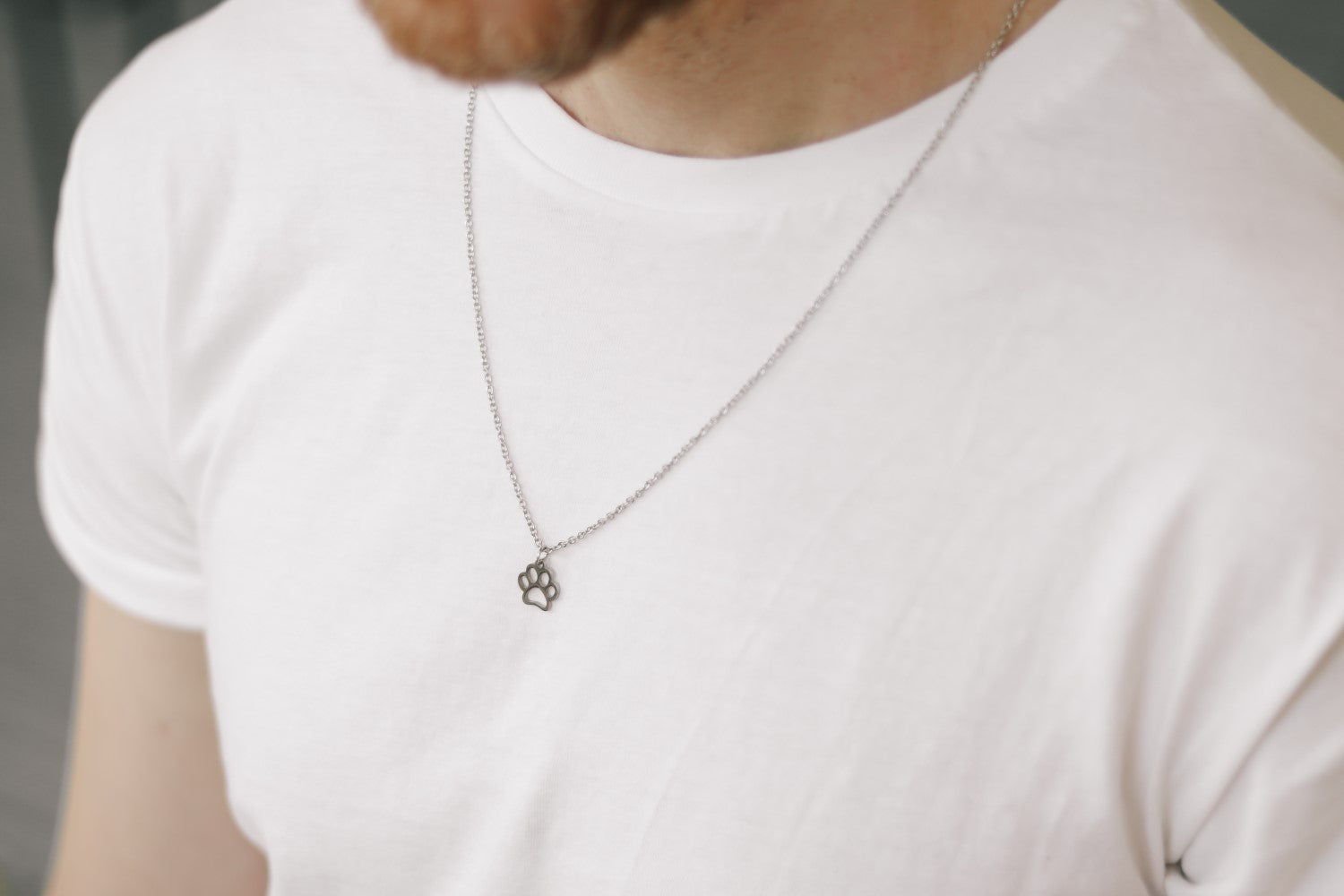 Anhänger-Halskette für Herren – Herrenhalskette mit einem Pfotenanhänger aus Edelstahl an einer Edelstahlkette und einem Karabinerverschluss.