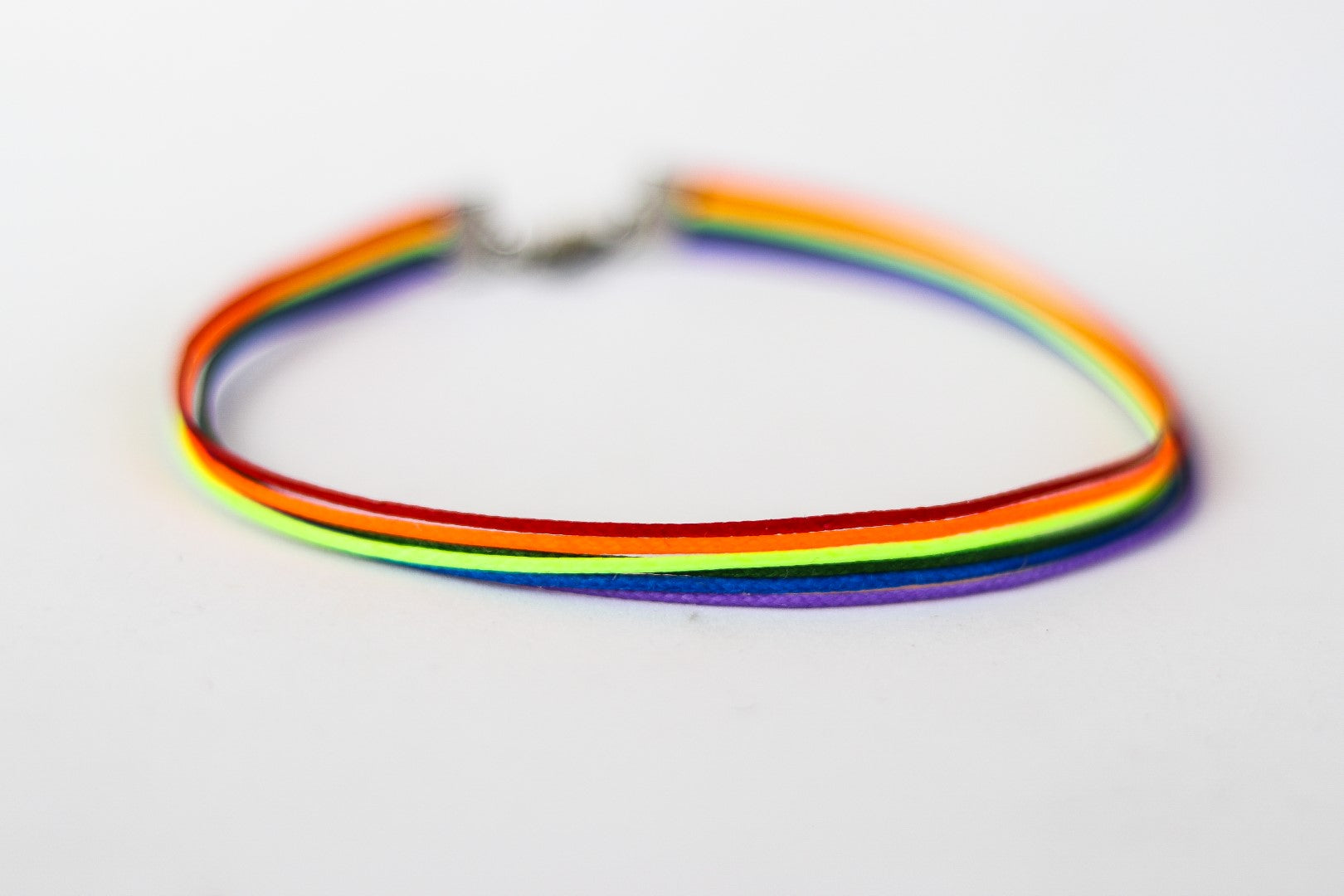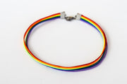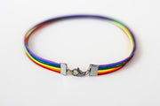 Pride-Knöchelarmband – Kordel-Fußkettchen ohne Anhänger, mit sechs Kordeln, die die Farben der Pride-Regenbogenflagge darstellen: Rot, Orange, Gelb, Grün, Blau und Lila, und sie bestehen aus gewachster Baumwolle. Silberfarbener Karabinerverschluss.
