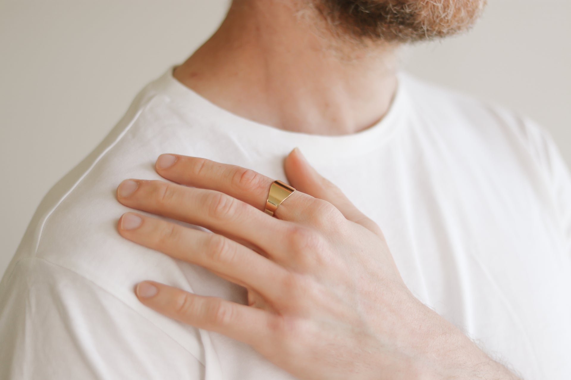 Schlichter, verstellbarer Ring für Herren, vergoldet.