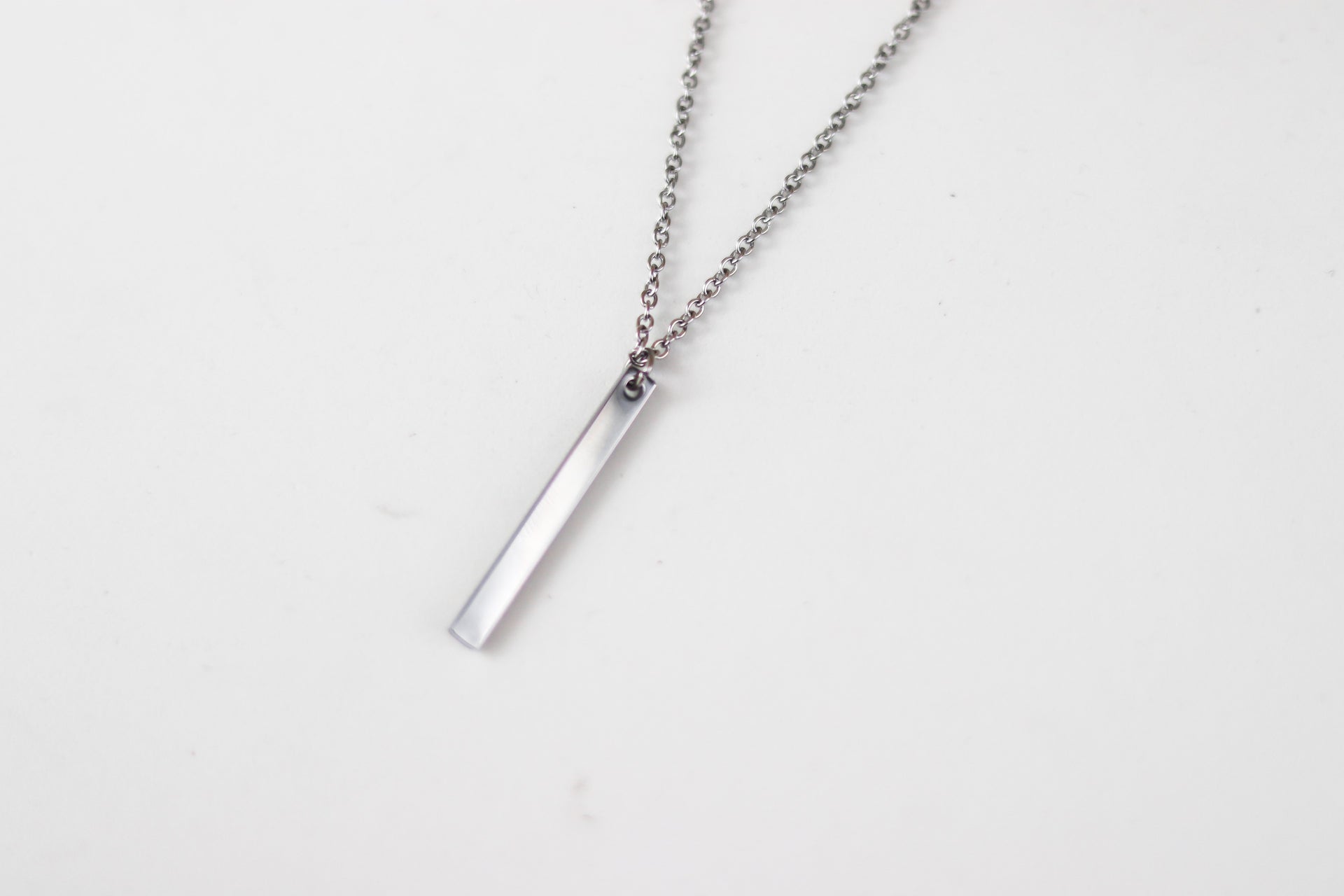 Anhänger-Halskette für Herren – Herrenhalskette mit einem Stabanhänger aus Edelstahl an einer Edelstahlkette und einem Karabinerverschluss.