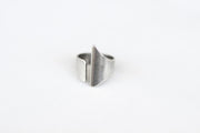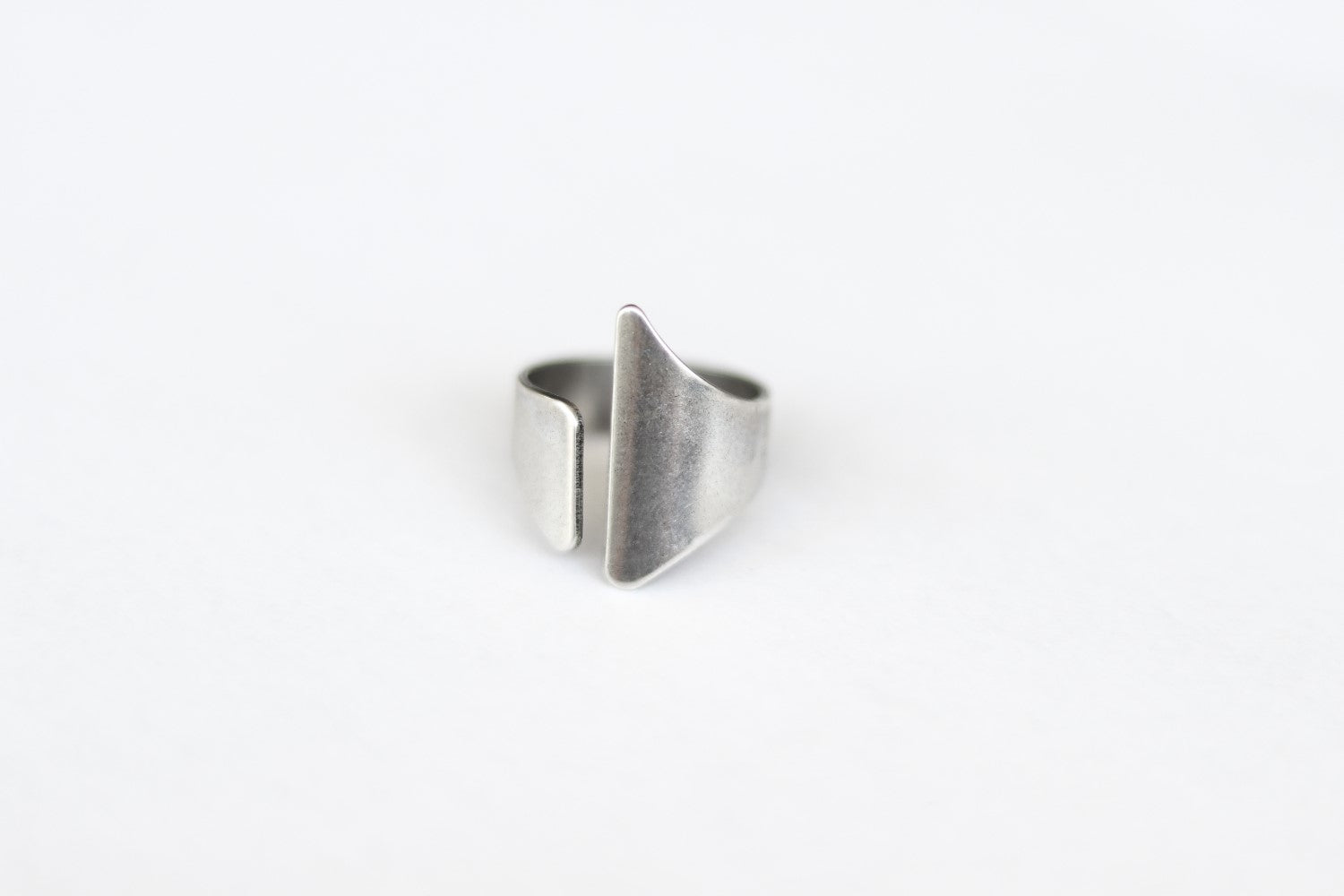 Verstellbarer Ring im asymmetrischen Stil mit silberplattierter, vorne offener Form.