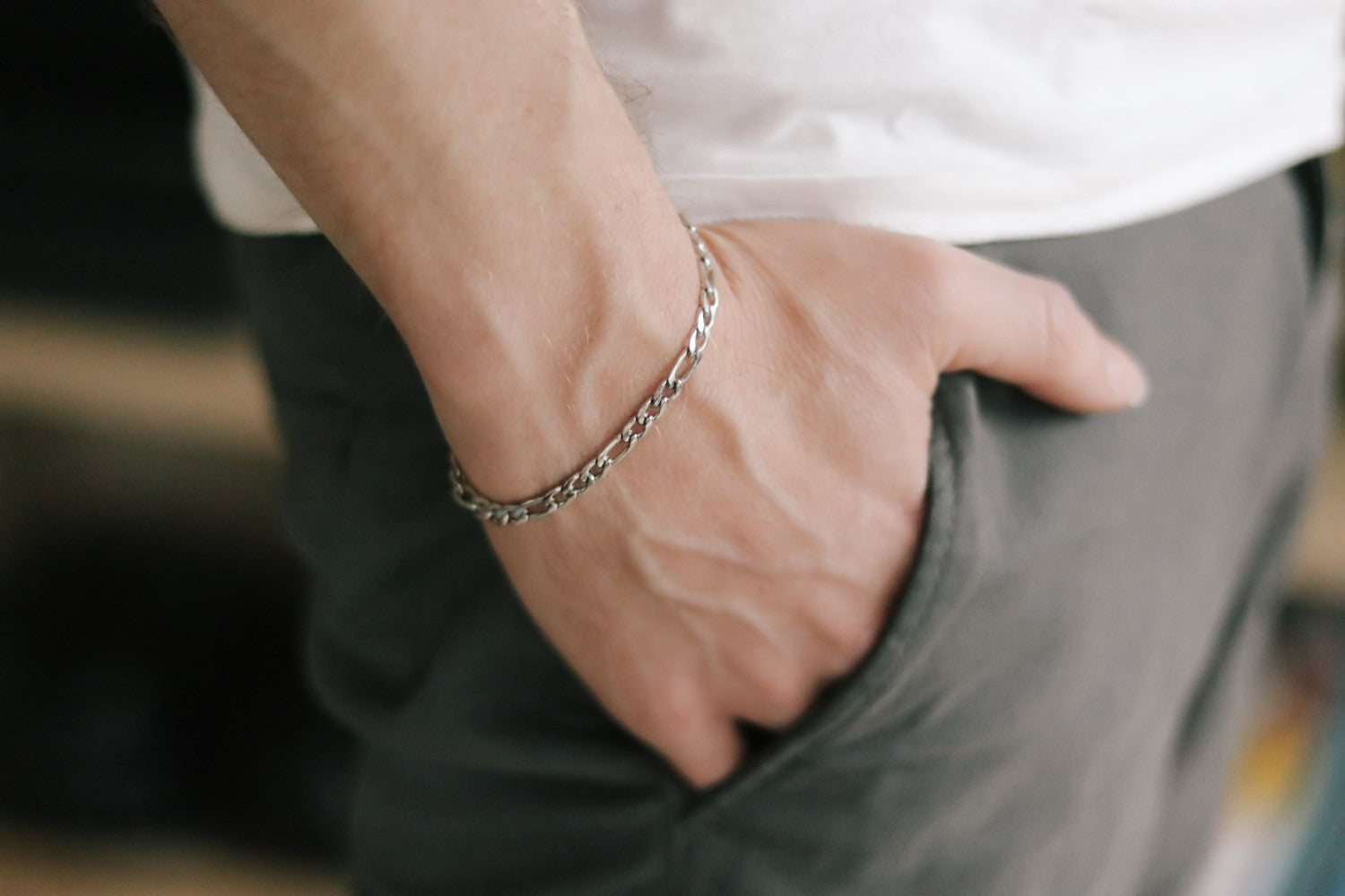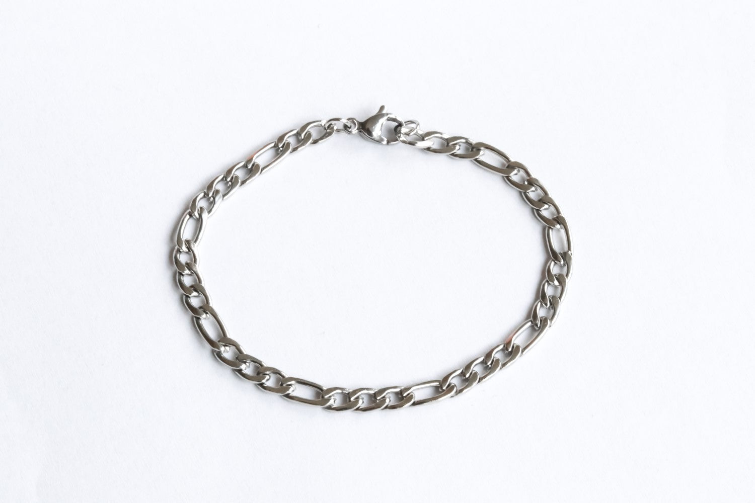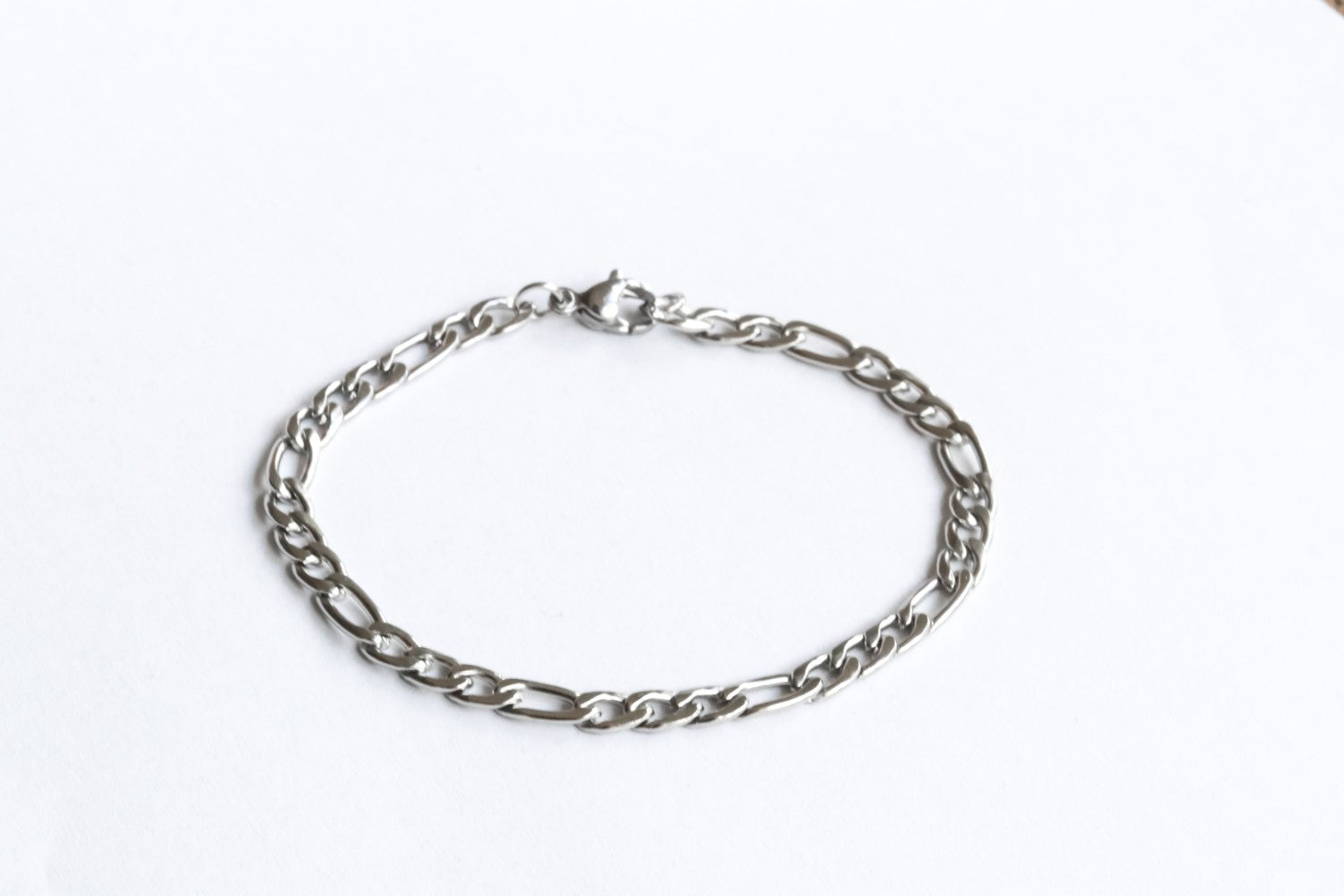 Armband für Herren mit Figarokette in Silberoptik. Mit Karabinerverschluss.
