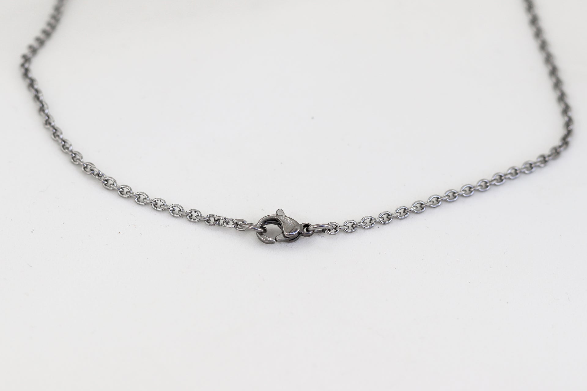 Die Halskette ist 16 Zoll lang und hat einen Karabinerverschluss. Wenn Sie eine andere Länge wünschen, schreiben Sie Ihren Wunsch bitte an der Kasse.