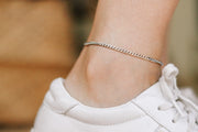 Minimalistische Fußkette aus silberfarbenem Edelstahl (wasserfest). Mit Karabinerverschluss.
