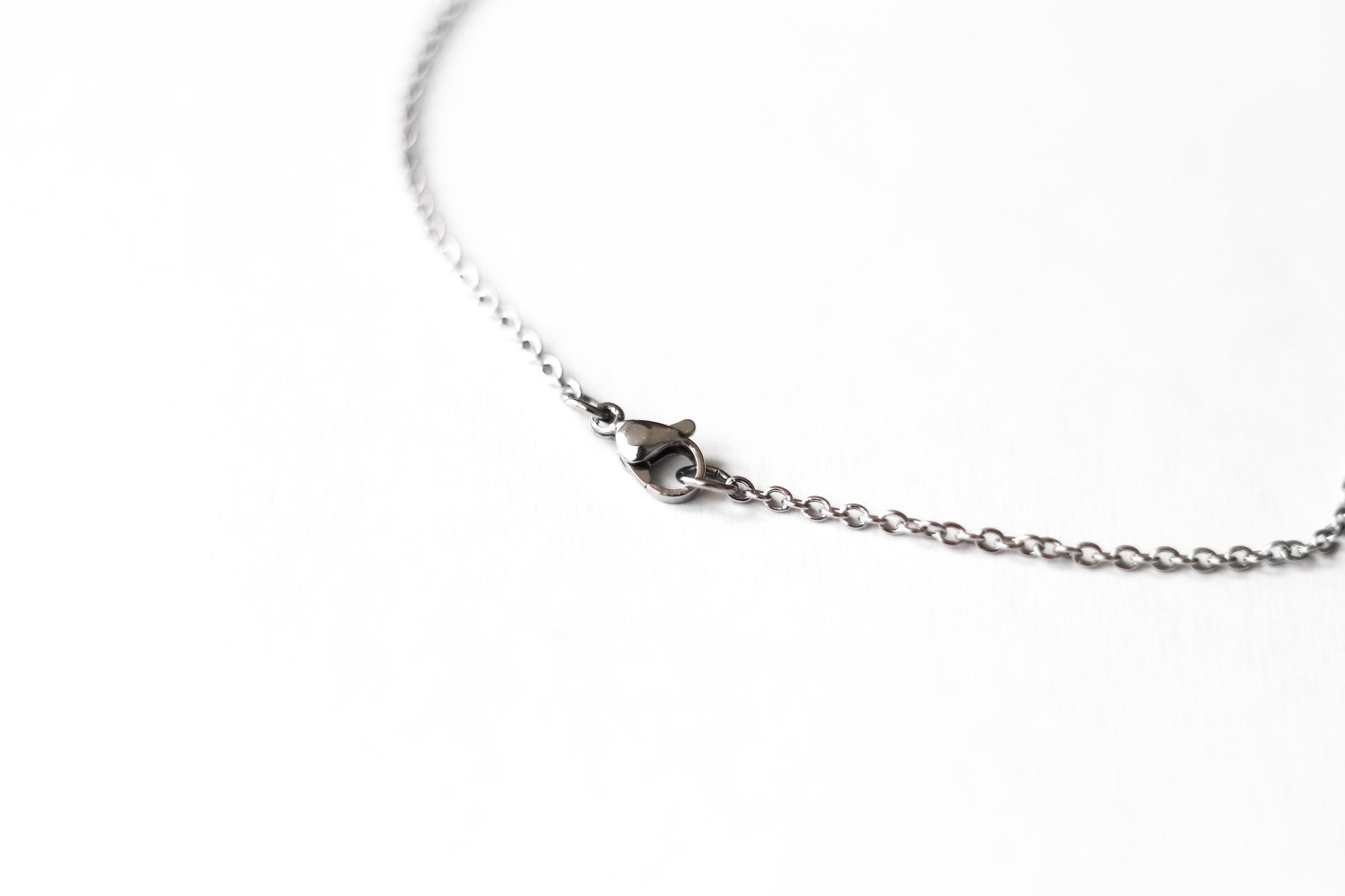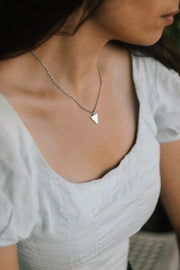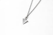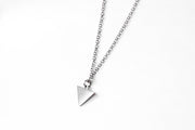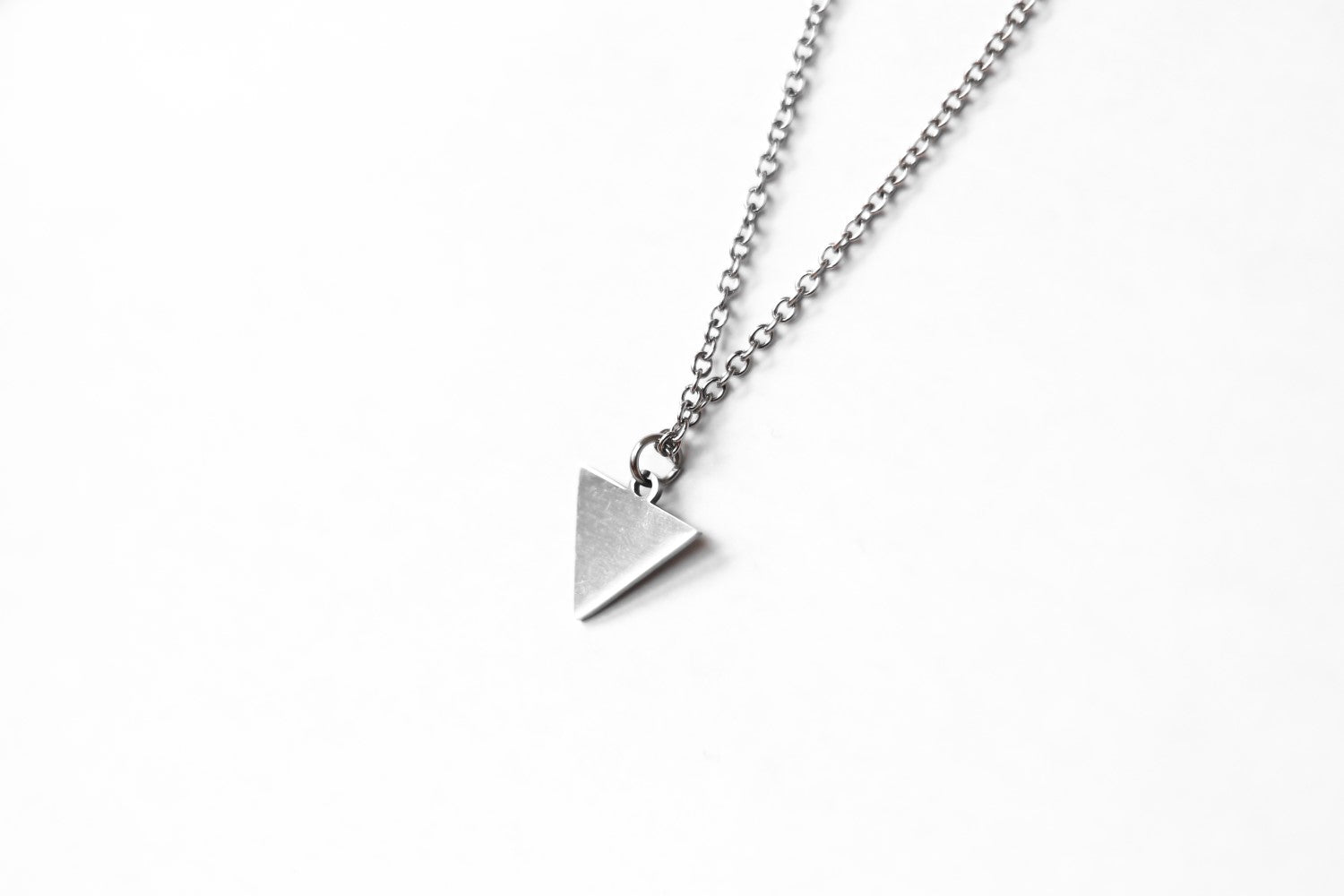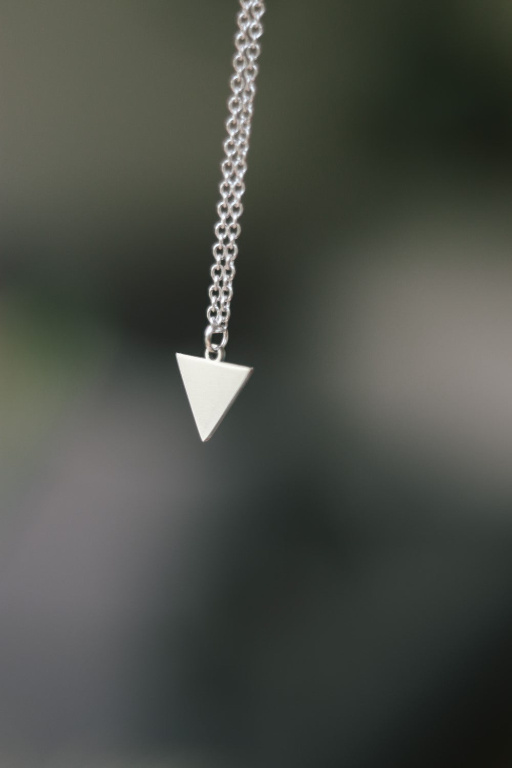 Dreieckskette – minimalistische Kette mit einer silberfarbenen Edelstahlkette und einem silberfarbenen Edelstahl-Dreiecksanhänger. Wasserfeste Kette.