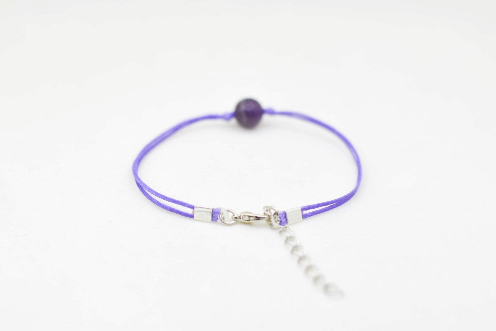 Birthstone bracelet - cord bracelet with one Amethyst purple bead - February birthstone. The cords are purple and made of cotton and the bead is Amethyst stone. Clasp closure. You can choose a different cord color from the colors shown in the last picture.