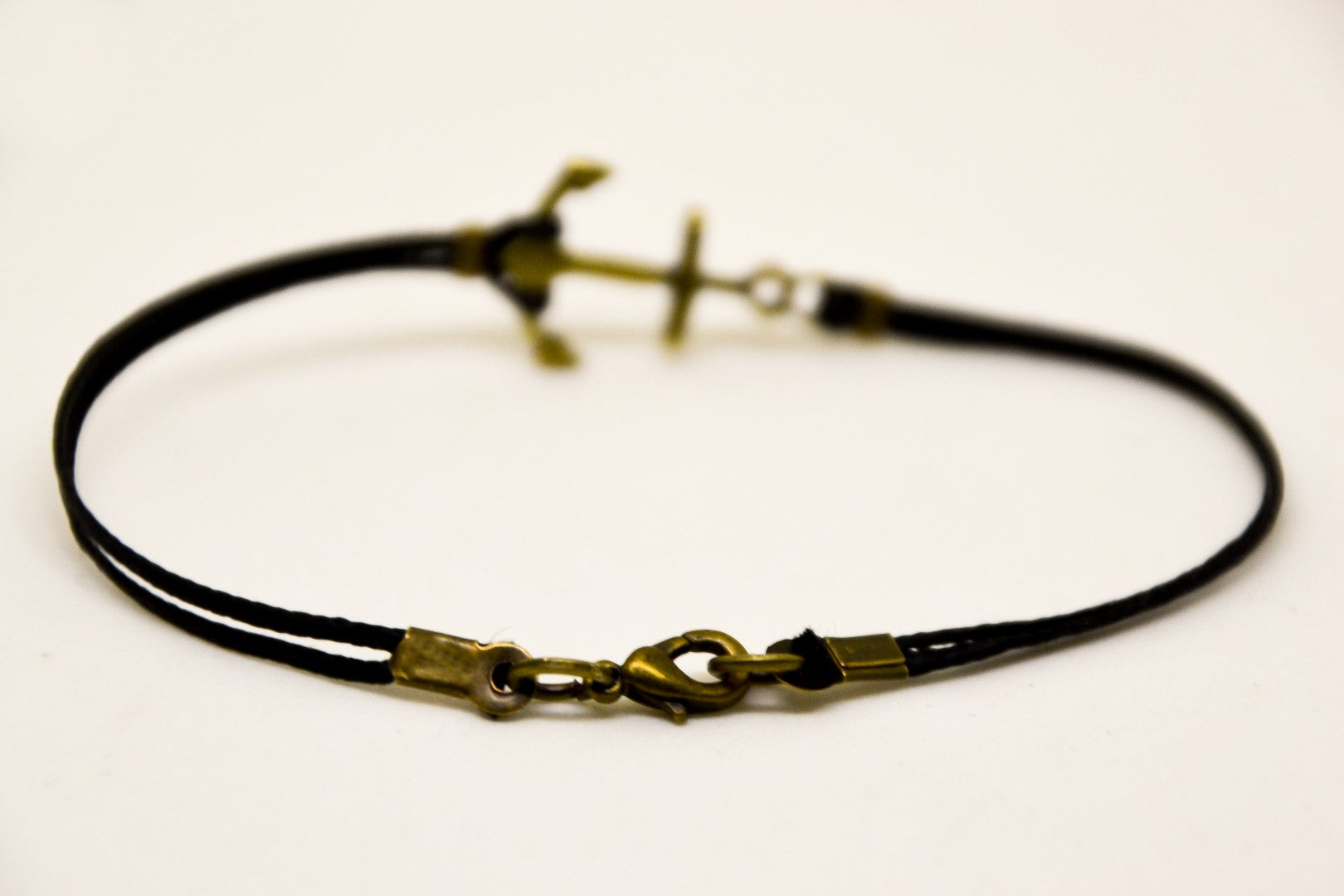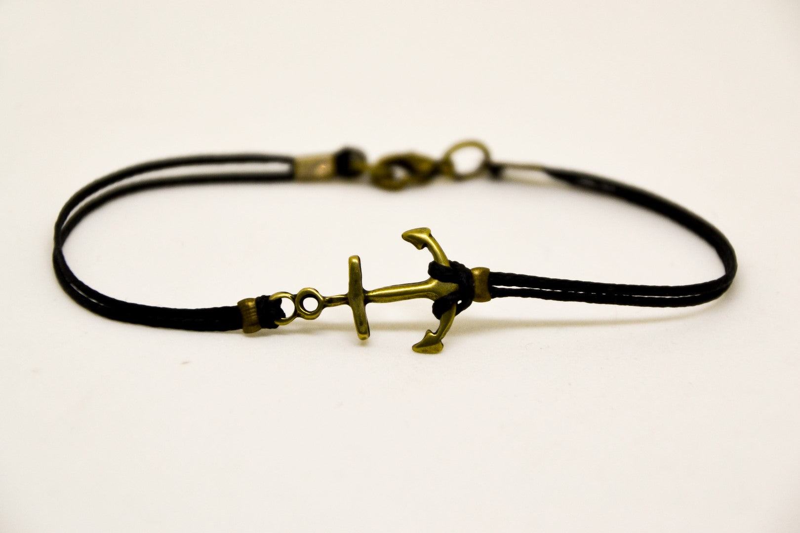 Anchor bracelet for men - cord bracelet with a bronze tone anchor charm. The cord is black and made of cotton and the charm is made of brass. Clasp closure.