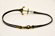 Bronze anchor bracelet for men with black cord, nautical surfer jewelry