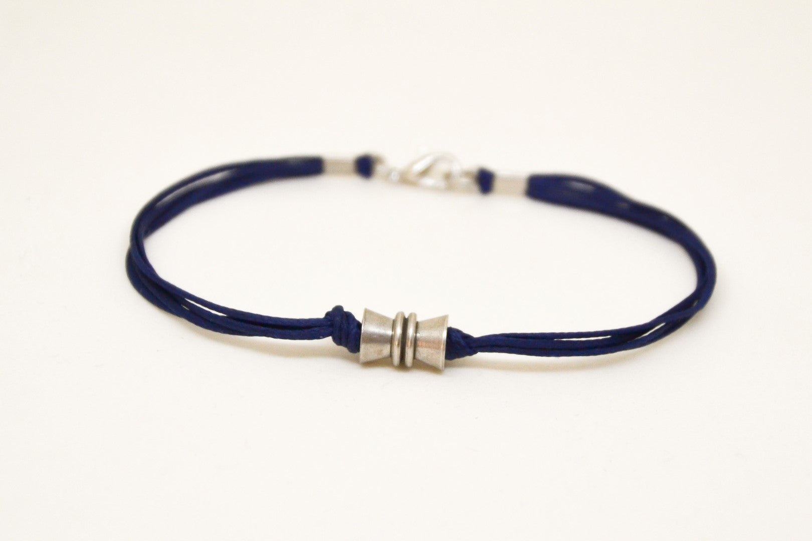 Bracelet for men - cord bracelet with a silver tone bead charm. The cord is black and made of cotton and the charm is made of alloy. Stainless steel clasp closure. You can choose a different cord color from the colors shown in the last picture.