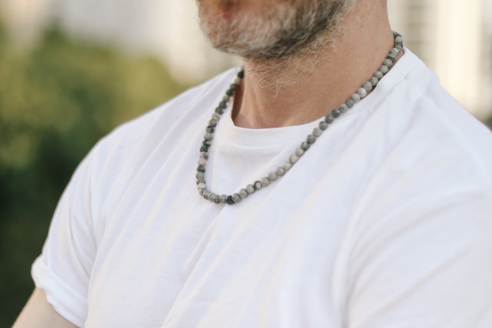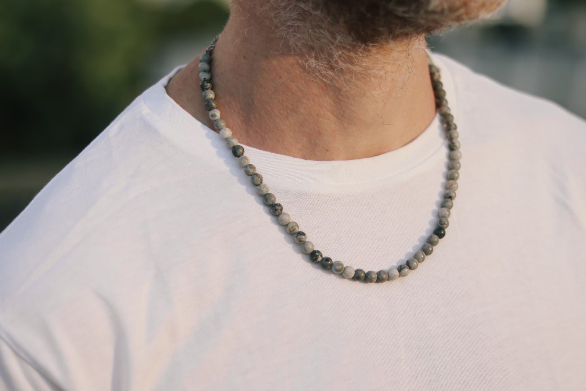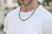 Map Jasper Necklace for Men, Beaded necklace, men's necklace with gray beads, 6mm beads, protection, adjustable, gift for him, mens jewelry